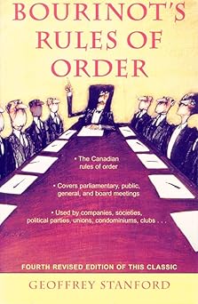 - Stanford, Geoffrey (1995) Bourinot’s Rules of Order: A Manual on the Practices and Usages of the House of Commons of Canada and on the Procedure at Public Assemblies, Including Meetings of Shareholders (4th Edition)